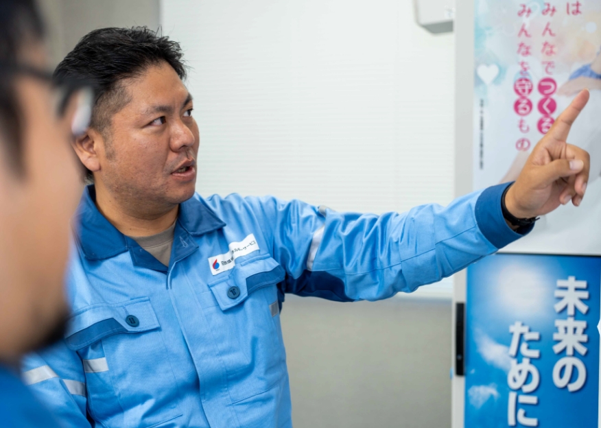 私はもともと自衛官でした。自衛隊の就職支援制度でNSESを知り、安定性と休日がしっかり取れる勤務体系に惹かれて入社を決めました。当初は廃棄物処理部門(岡崎事業所やさが⻄部事業所)で働いていたのですが、令和6年に現在の味の素九州事業所(エネルギー部門)へ異動しました。