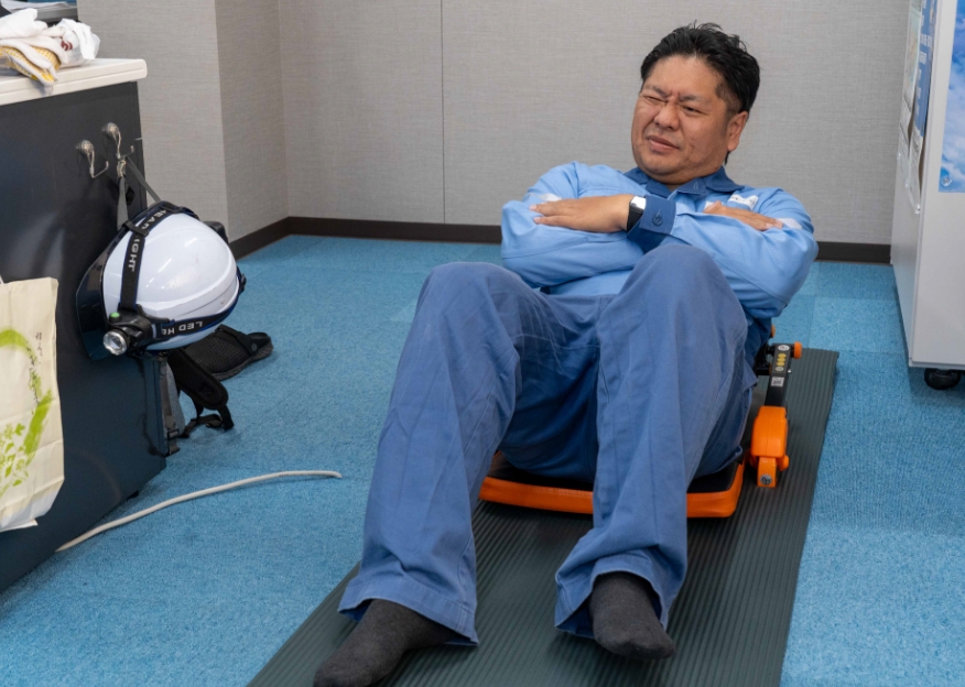 客先の勤務者と一緒に朝礼前の準備体操(「味の素体操」と呼ばれるラジオ体操に似た独自の体操)を⾏います。