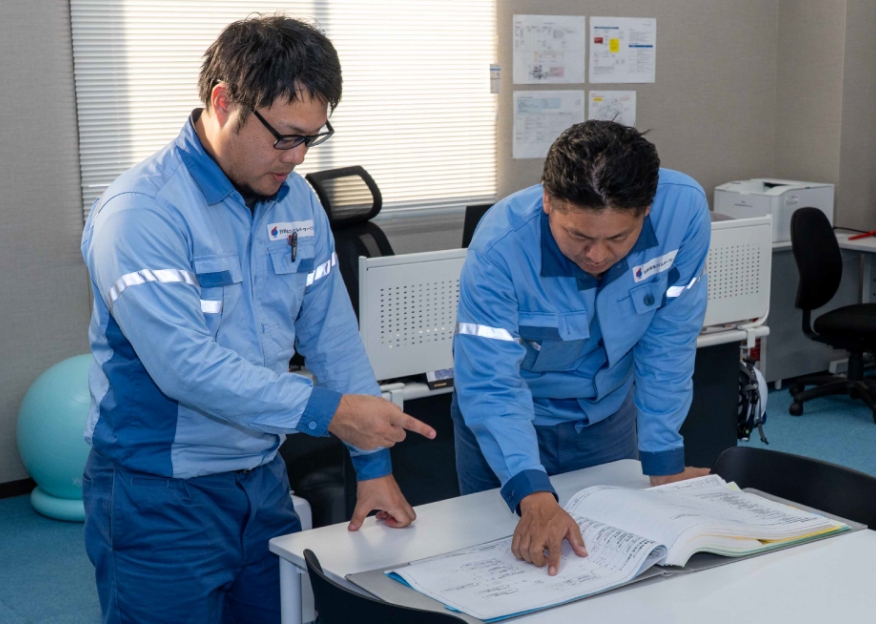 また、溶融部門からエネルギー部門へ異動したことも、自分にとっては⼤きなプラスでした。電気‧計装の基礎知識を学ぶ機会を得て、ある程度のキャリアを積んでから再び初⼼に帰って勉強できたことには、すごく感謝しています。
