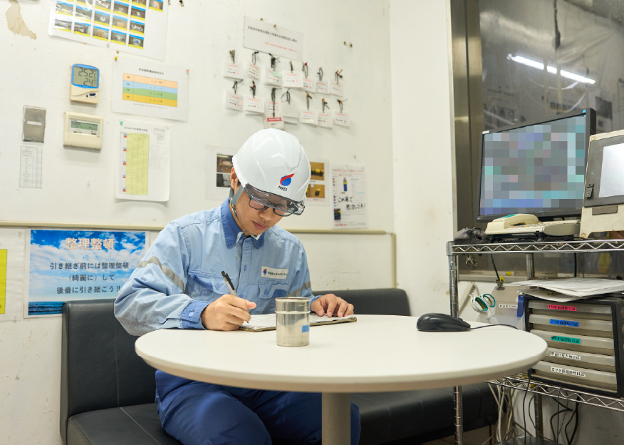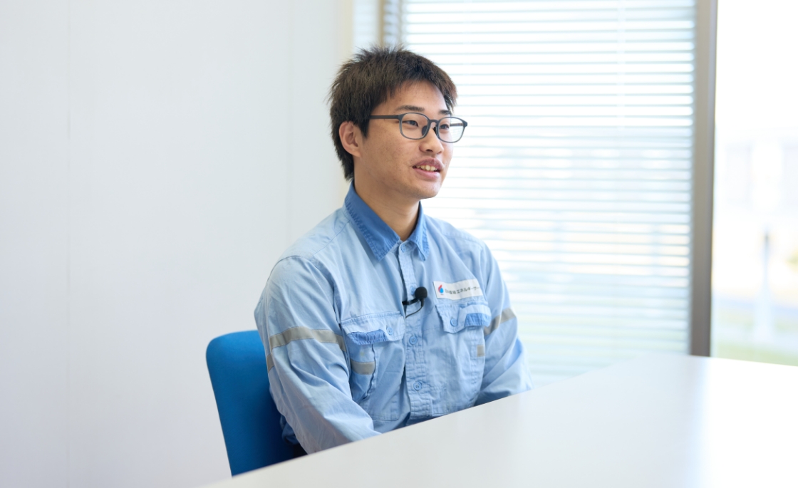 今、私は操業班の副班⻑として1年ほど経ちました。班⻑の補佐と班員のサポートを両⽴できるように努めていますが、技術的な⾯でまだまだ不⾜している部分が多いと感じています。ですから、より一層実務経験を積みながら、技術的に⽋けている所を重点的に勉強していきたいです。そのために、資格取得も自主的に進めて、自⾝のスキルアップに努めていきたいと考えています。