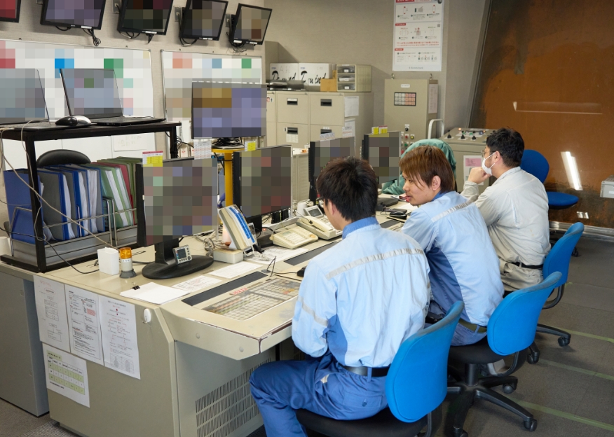 溶融炉は24時間稼働しているため、中央操作室には常時監視人が必要です。そのためメンバーで時間をずらして交代しながら、1時間半の休憩をとります。