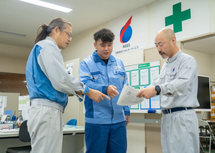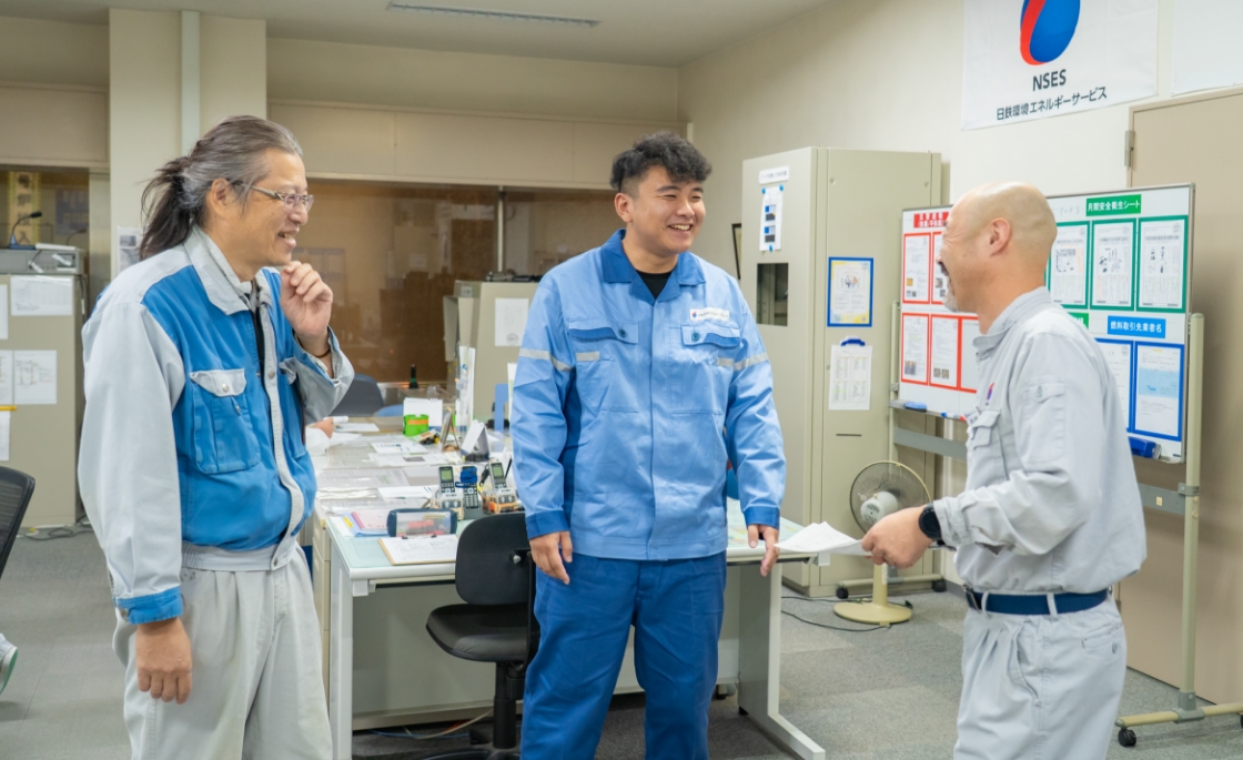 NSESに入社する前は、塩化ビニールの製造工場で、クレーンやフォークリフトを使って出荷作業を⾏う 仕事をしていました。転職しようと思ったときに、社会に不可⽋な仕事をしたいと考えていました。 ハローワークでNSESの募集を見つけ⾯接を受けました。以前の会社は、正社員の就職があまりない状況 だったのですが、NSESでは正社員募集をしていたタイミングだったので良かったです。入社を決めた理 由の一つは、自分が持っていたクレーンやフォークリフトなどの資格を活かせる仕事だと思ったからで す。入社後は、希望通りクレーンを操縦する仕事に従事しています。