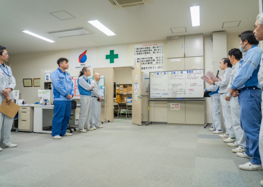 各班(整備班、操業班など)が場所に集まり、その日の予定や夜勤帯からの出来事(引き継ぎ事項)を共有します。